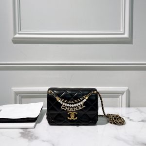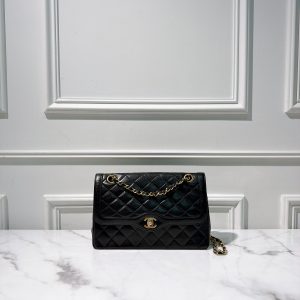 CHANEL 24A SMALL FLAP BAG, Black/Gold