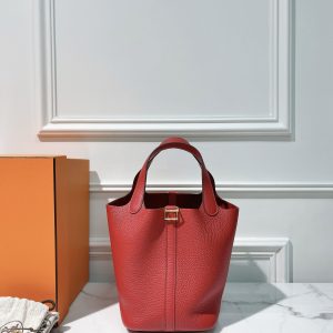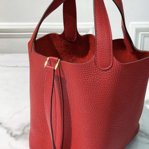 HERMES PICOTIN LOCK 18, Rouge Casaque/Gold