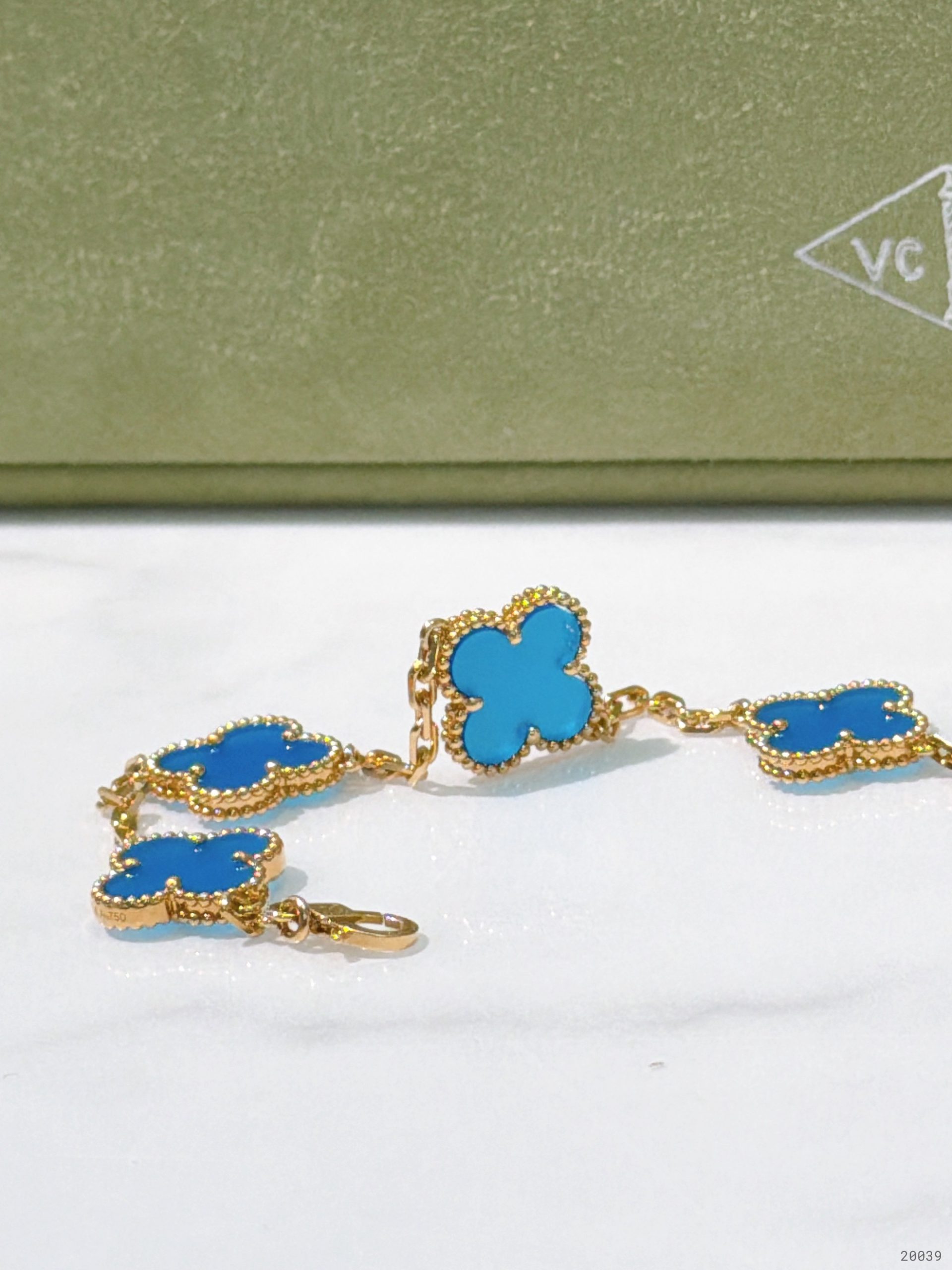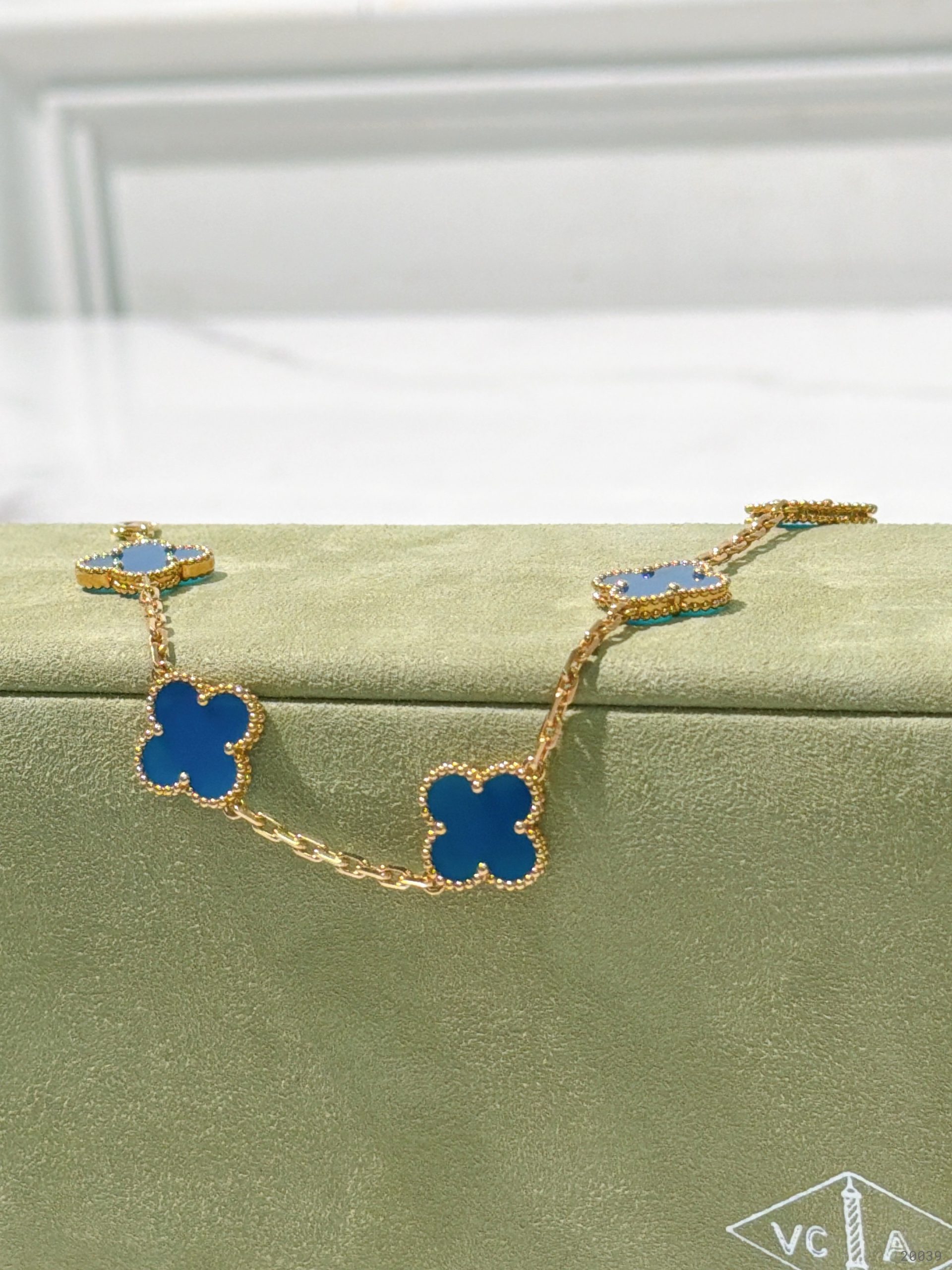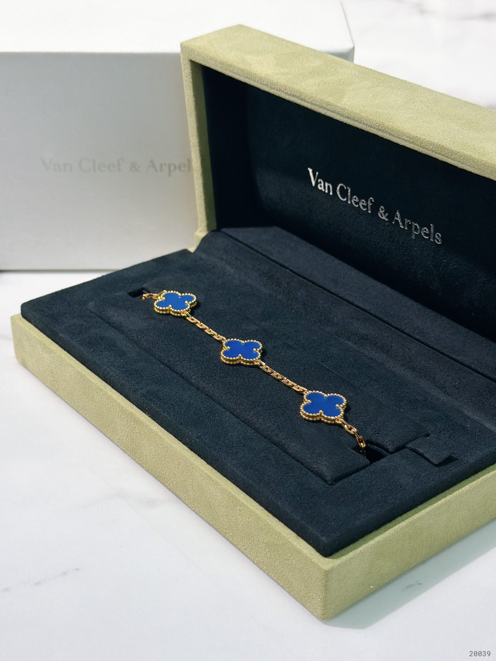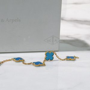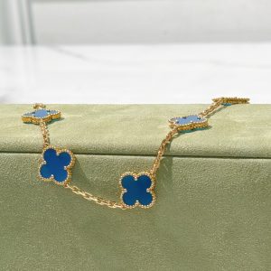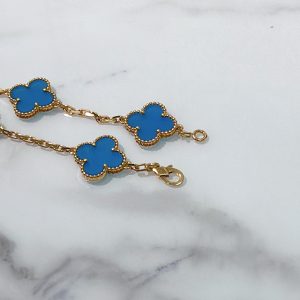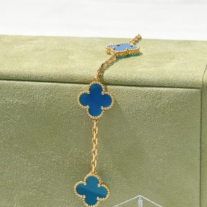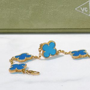 VCA VINTAGE ALHAMBRA BRACELET, 5 Motifs, Blue/Gold