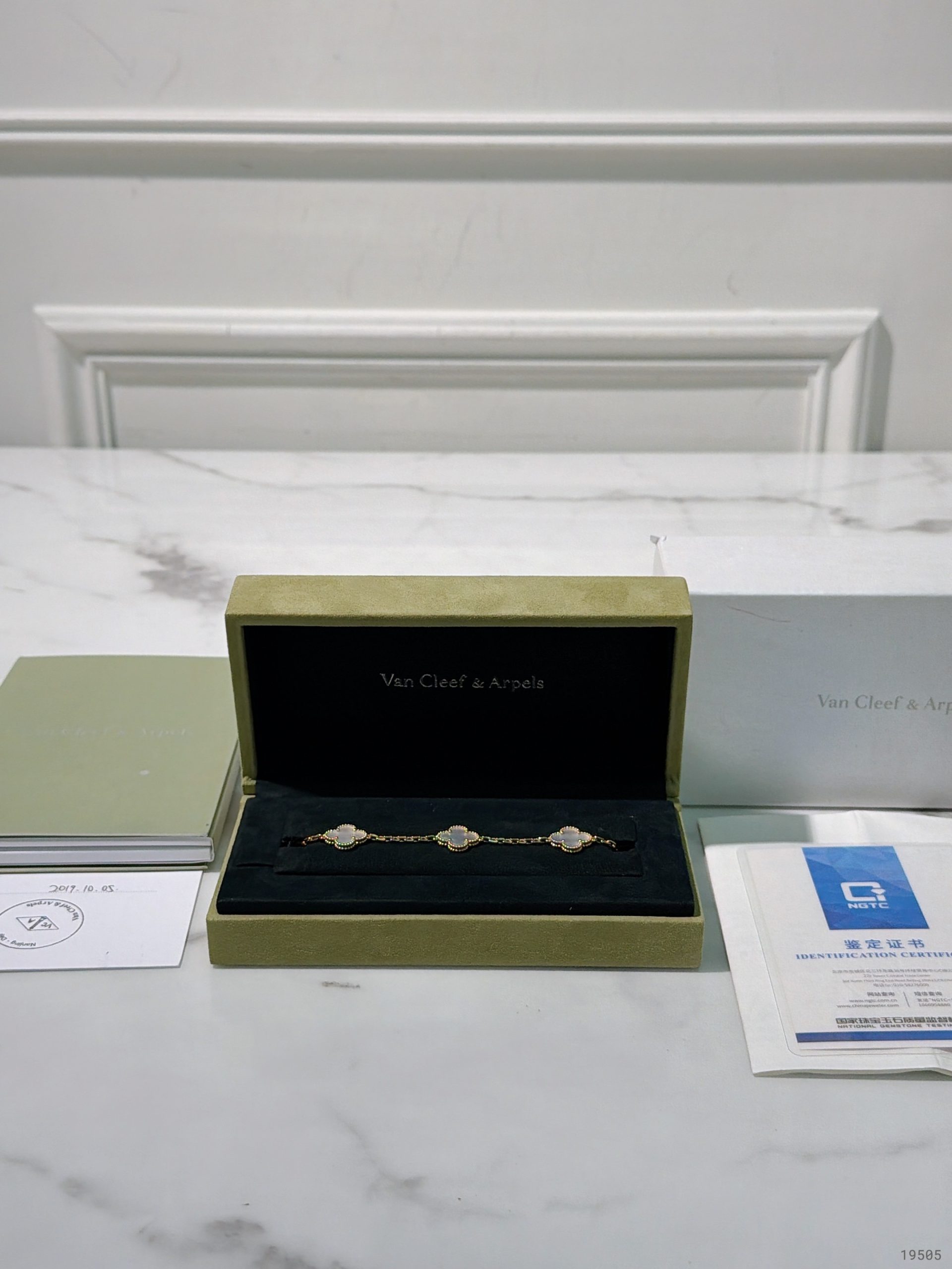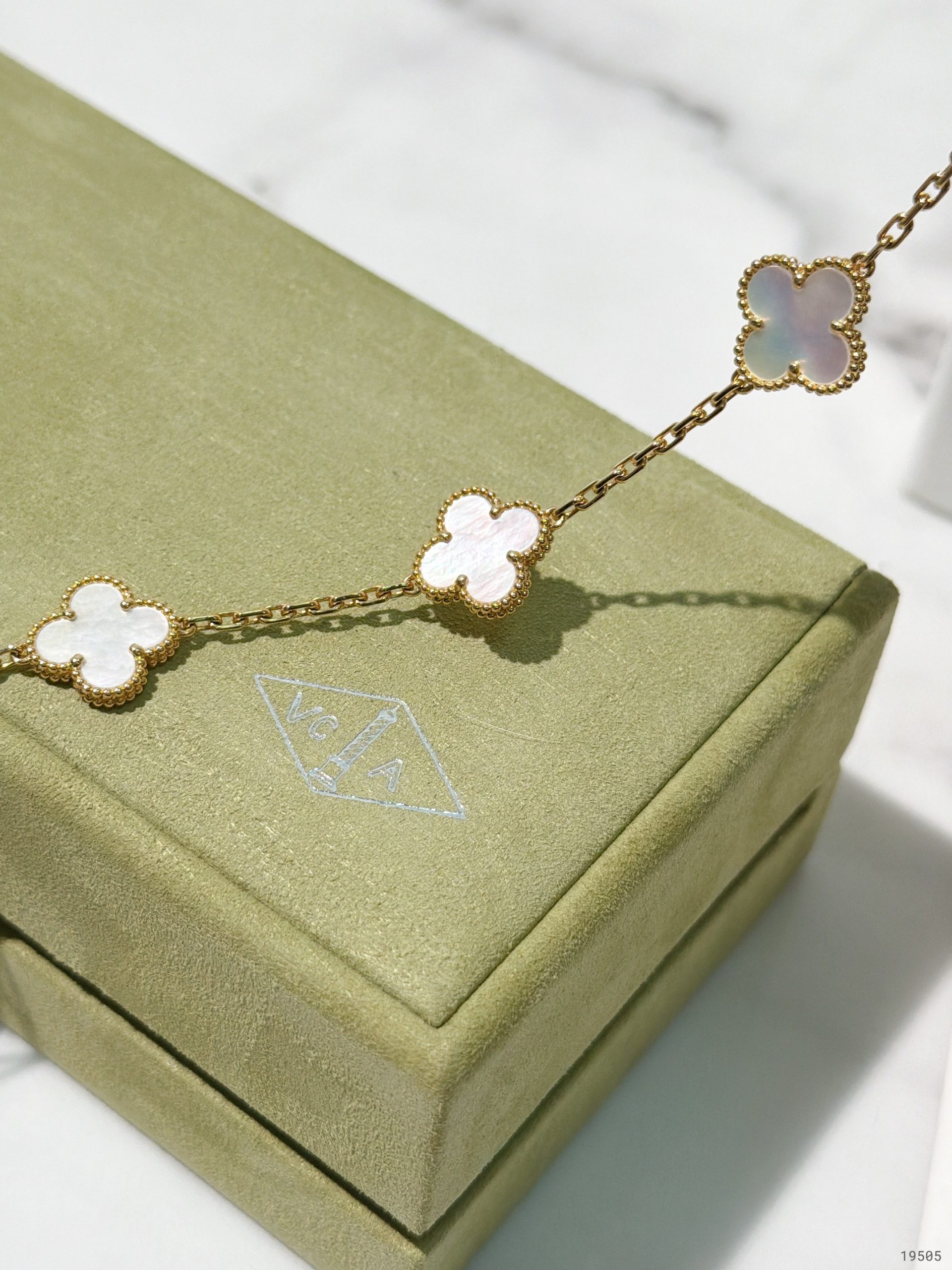/ VCA VINTAGE ALHAMBRA BRACELET, 5 Motifs, White/Gold