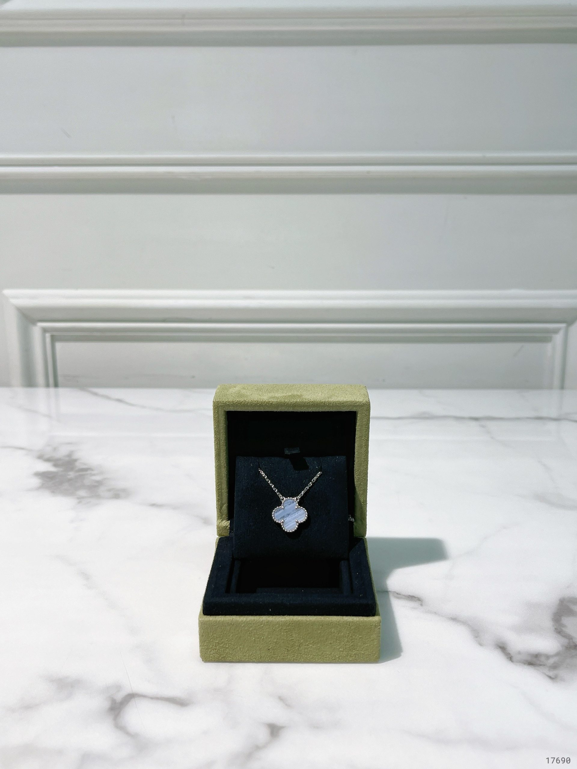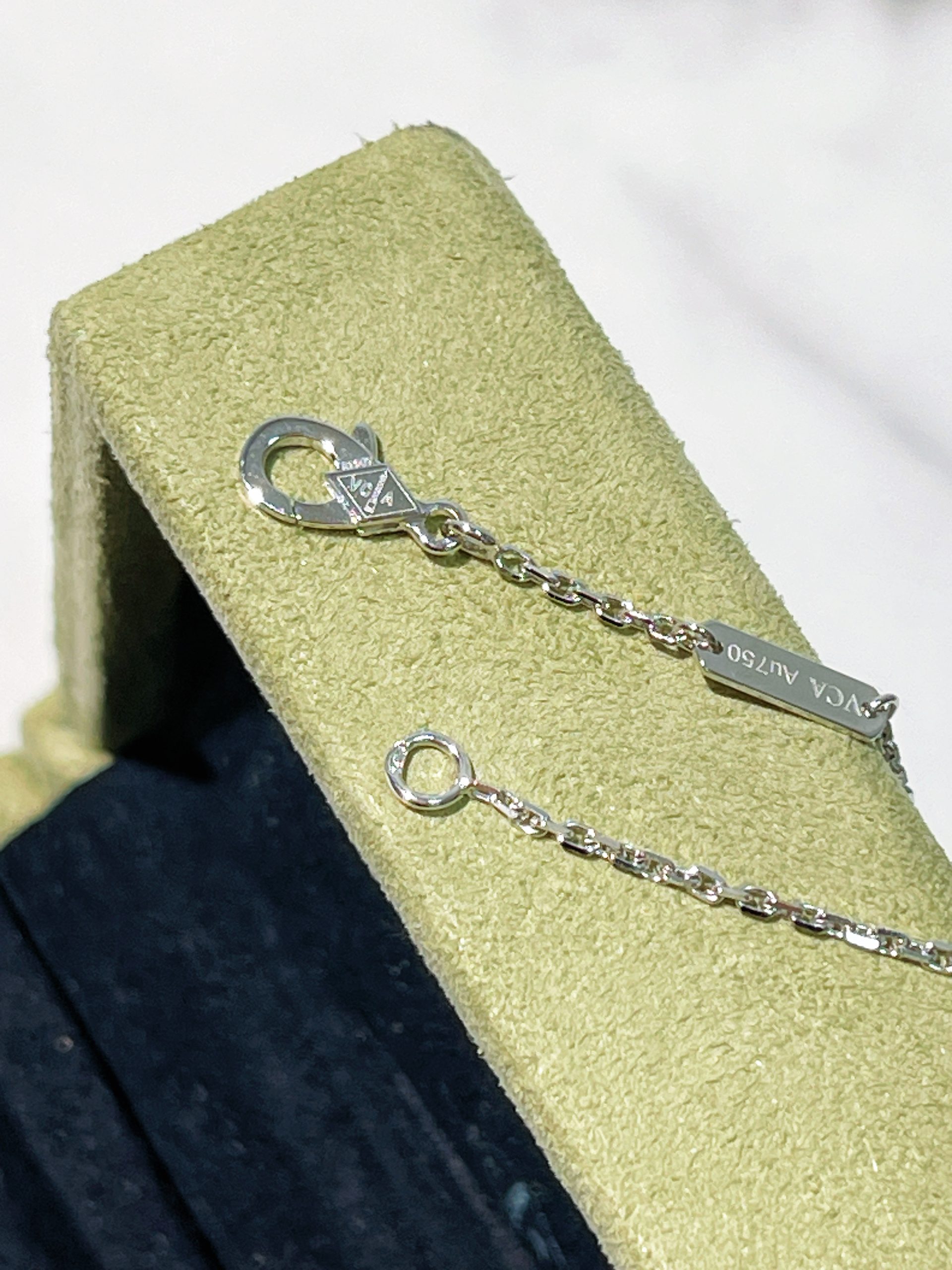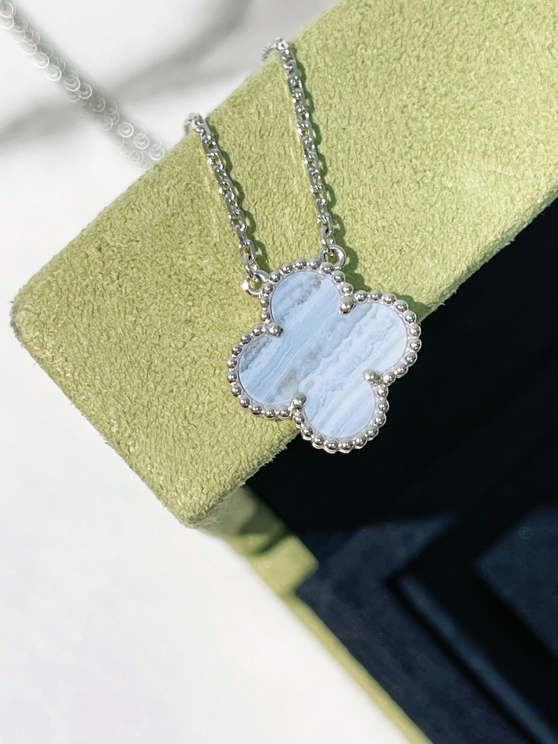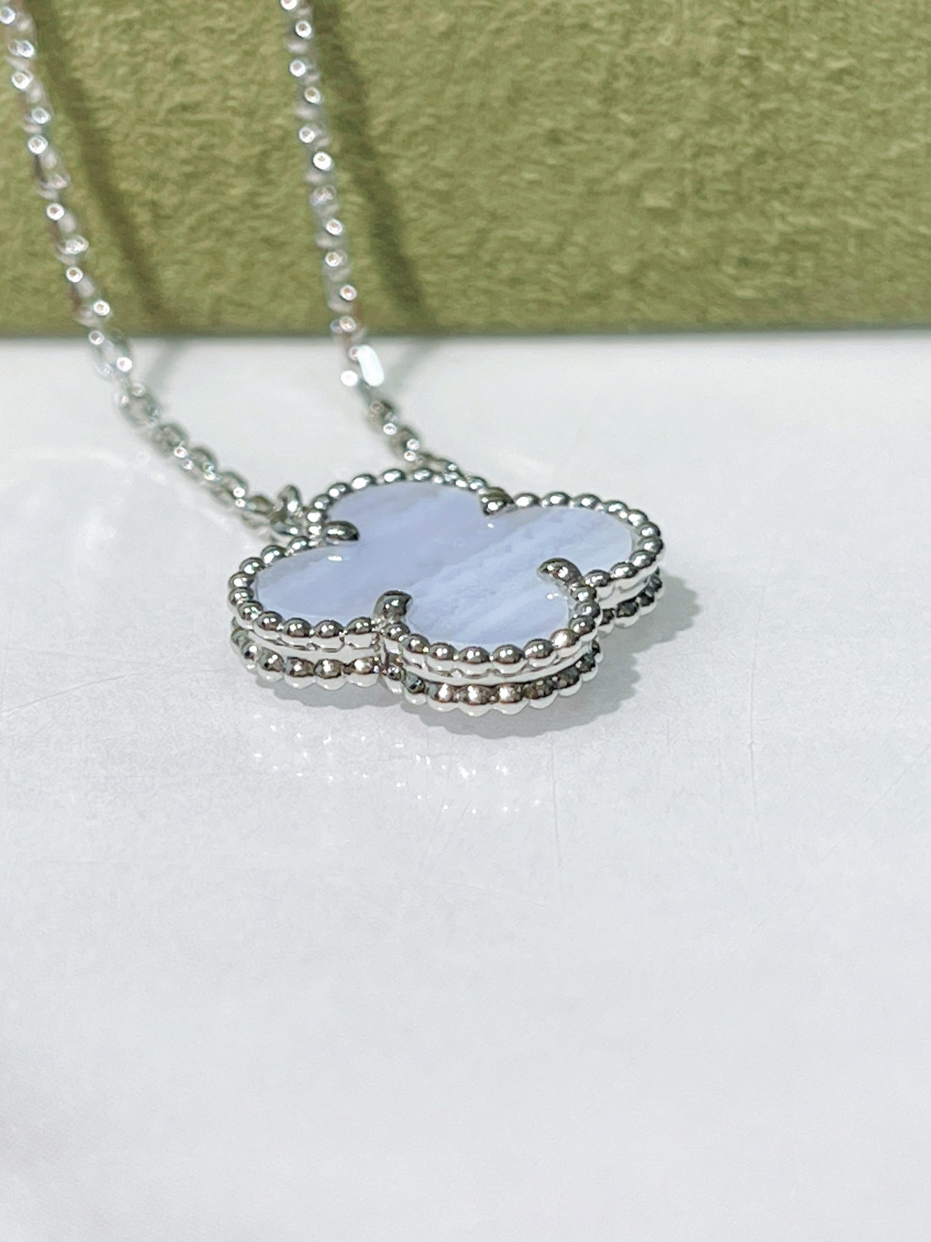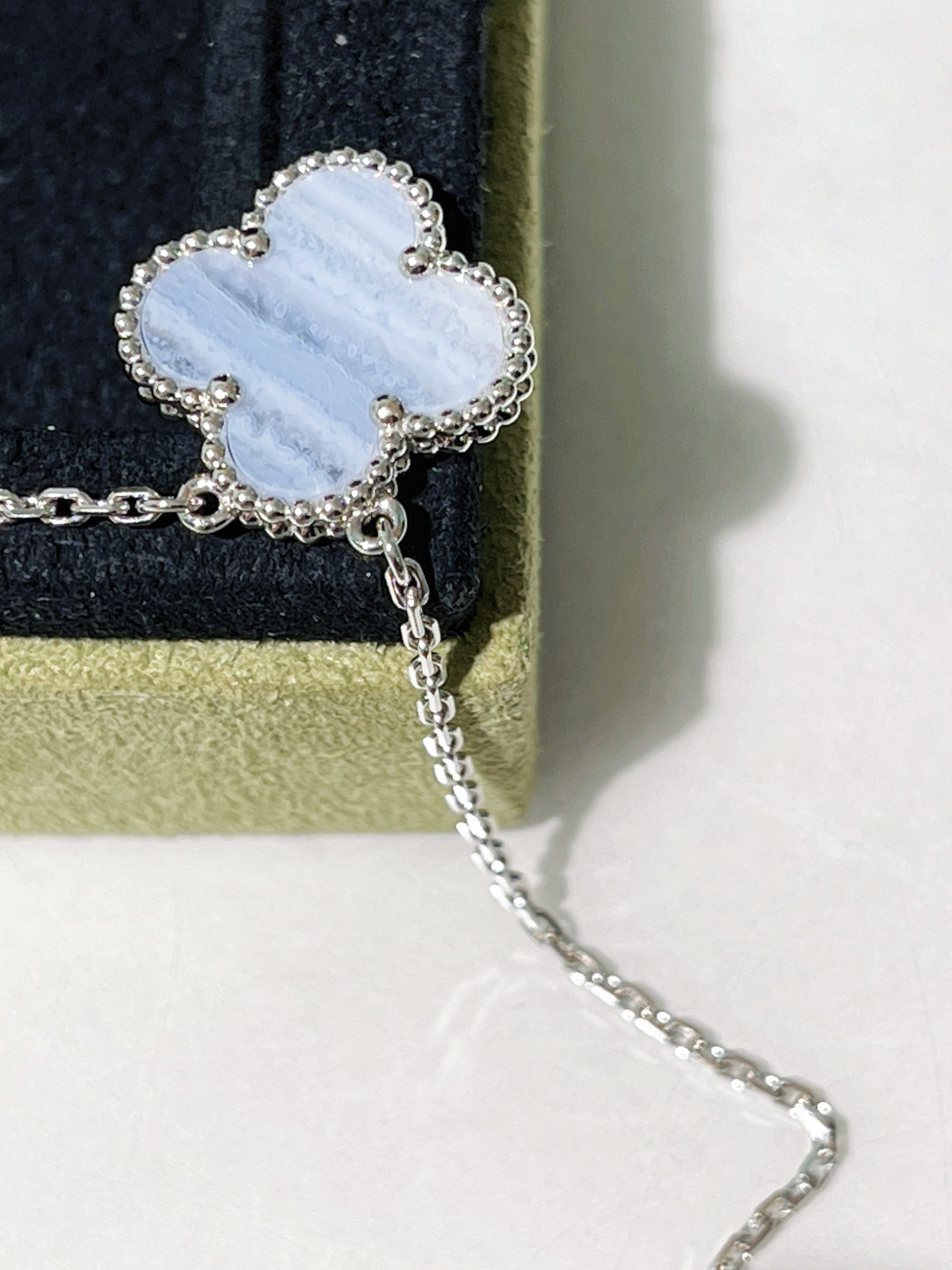 - Material: 18k white gold & chalcedony