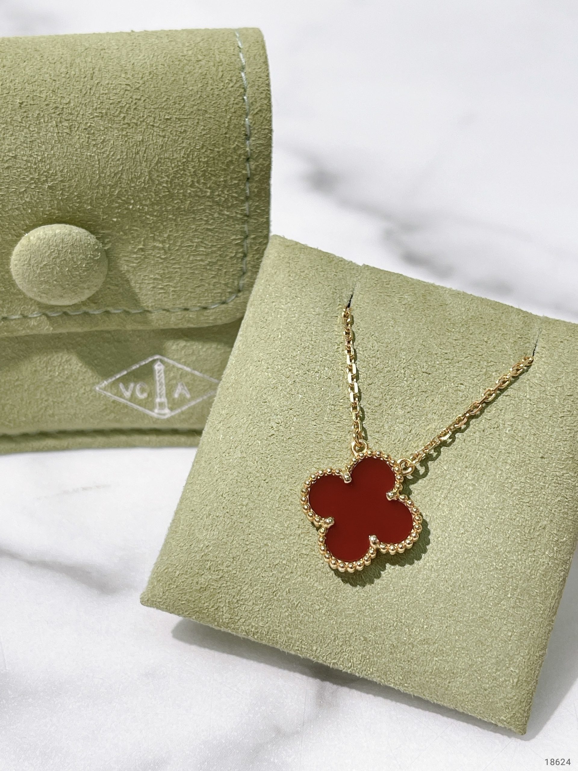 VCA VINTAGE ALHAMBRA NECKLACE, Red/Gold